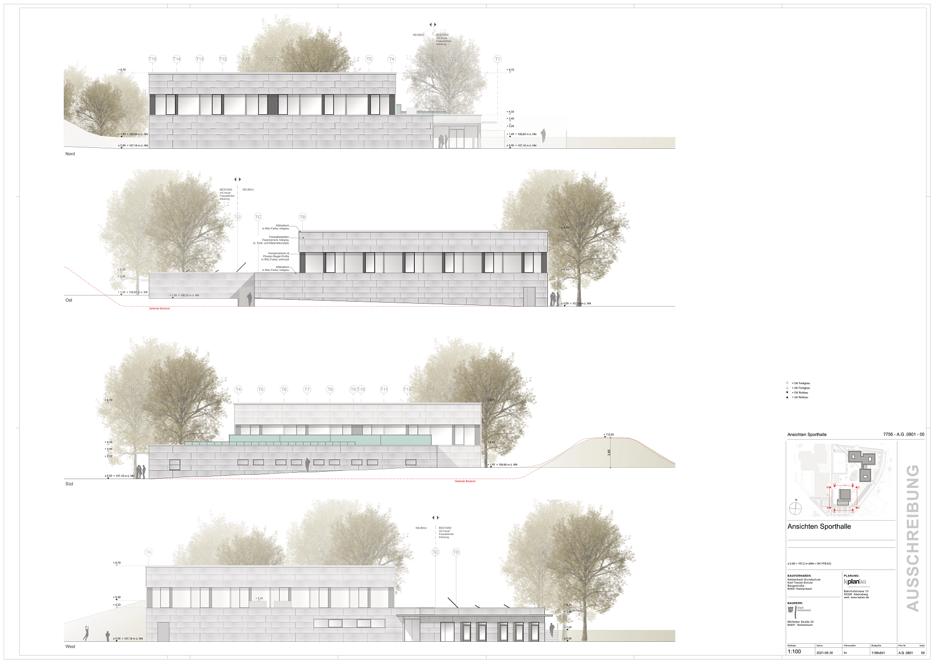 Der Neubau der Sporthalle wird getrennt an das bestehende Umkleidegebäude am Standort angebaut. Die Sporthalle